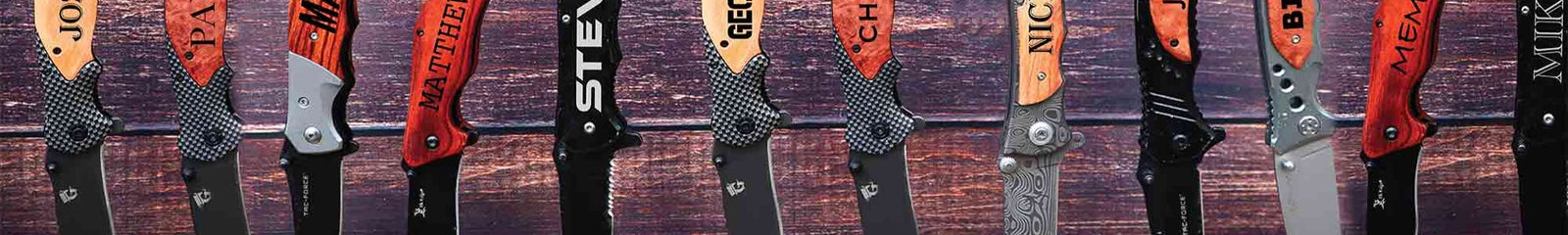 Find the perfect custom pocket knife, engraved knife gift, or custom utility knife in our collection. Whether you're looking for a personalized knife gift for a loved one or a practical tool for yourself, our selection ensures quality and customization.