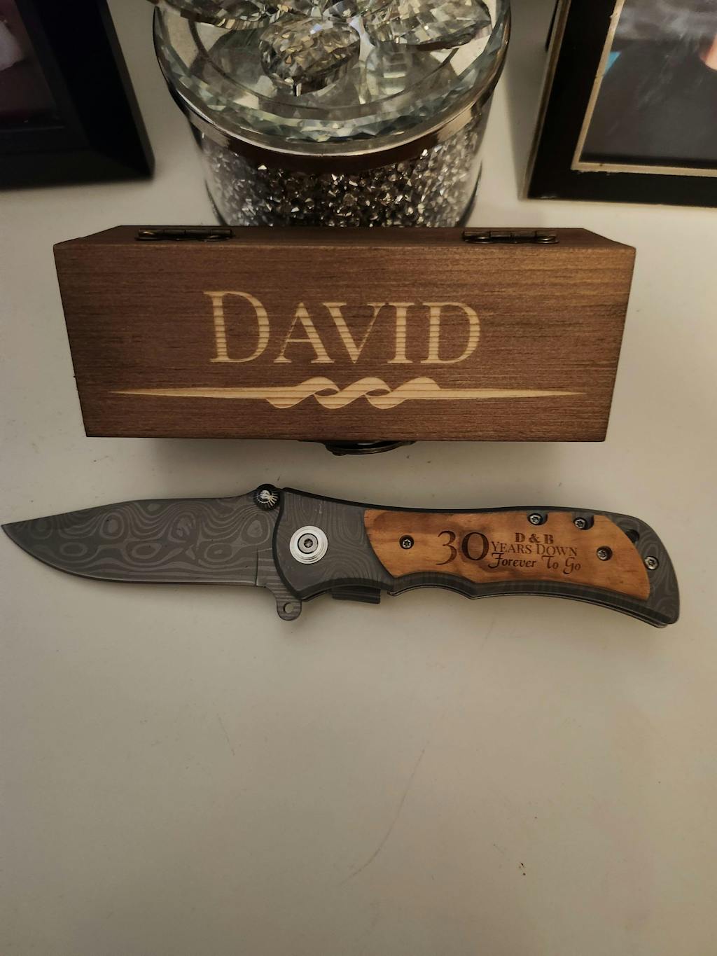 My husband opened his package and I saw his eyes get big. He opened his personalized box and saw the knife. I finally bot the perfect gift. Clean work and the personalized touches with his name and a little message made it even better. Thank you for taking pride in your work.