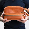 Modeled on our travel holdall of the same name, The Raleigh Wash Bag in Ebony Black Leather is a deluxe double compartment wash bag available with black, grey or white cotton embroidery. This handsome wash bag keeps fragile toiletries safe while providing ample room for bulkier items such as gels and shaving equipment. Perfect as an everyday wash bag or regular travel.