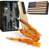 The greatest debate in America. Whose gun is better? Show your love for both with this Wall Mount Whiskey Decanter Set, featuring an AR15, AK47, and rifle decanter. Proudly display on your wall with the built-in mounting screws to show whose side you're on. Incredibly detailed and features an elegant US Flag Stand. The Whiskey Gun Decanter set is a great addition to any bar or man cave. Display these on a wall rack, shelf or mantle with pride.