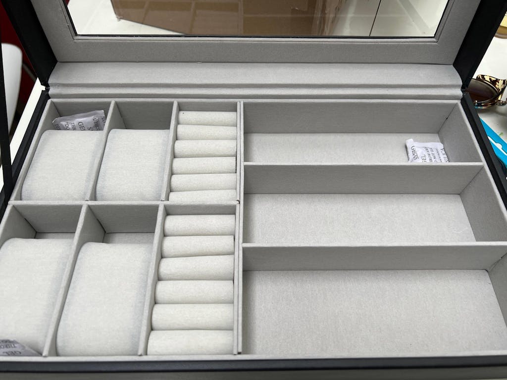 Compartments for watches, cufflinks, sunglasses, jewelry & more