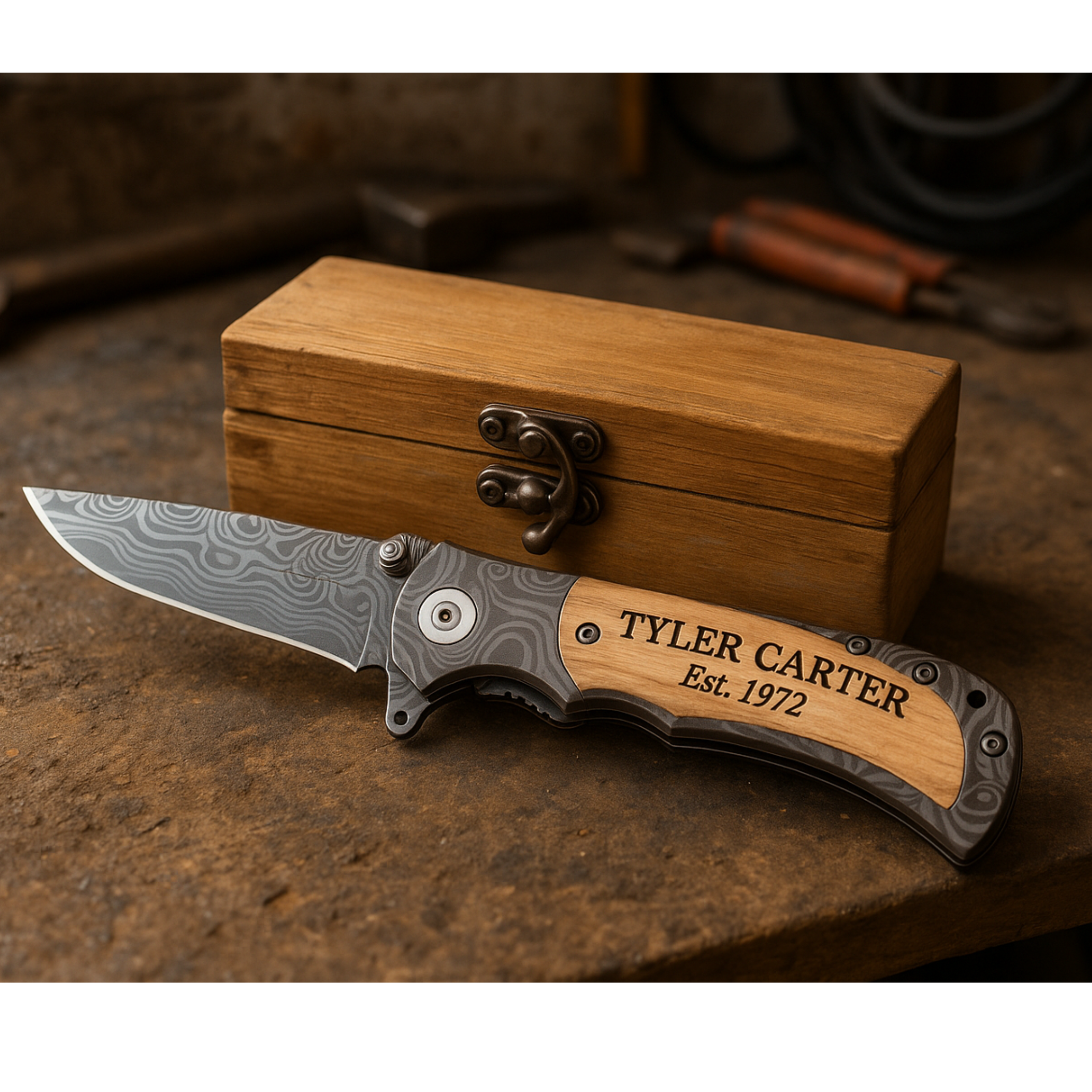 Mark his 70th birthday with a gift that says it all—strong, sharp, and full of character. This personalized folding knife is more than just practical; it’s a tribute to the journey he’s traveled and the wisdom he carries. With his name and birth year etched into the wood handle and a bold “70 and Still Sharp” engraved on the keepsake box, it’s the kind of gift that brings a proud smile—and maybe a tear—to his eye.
