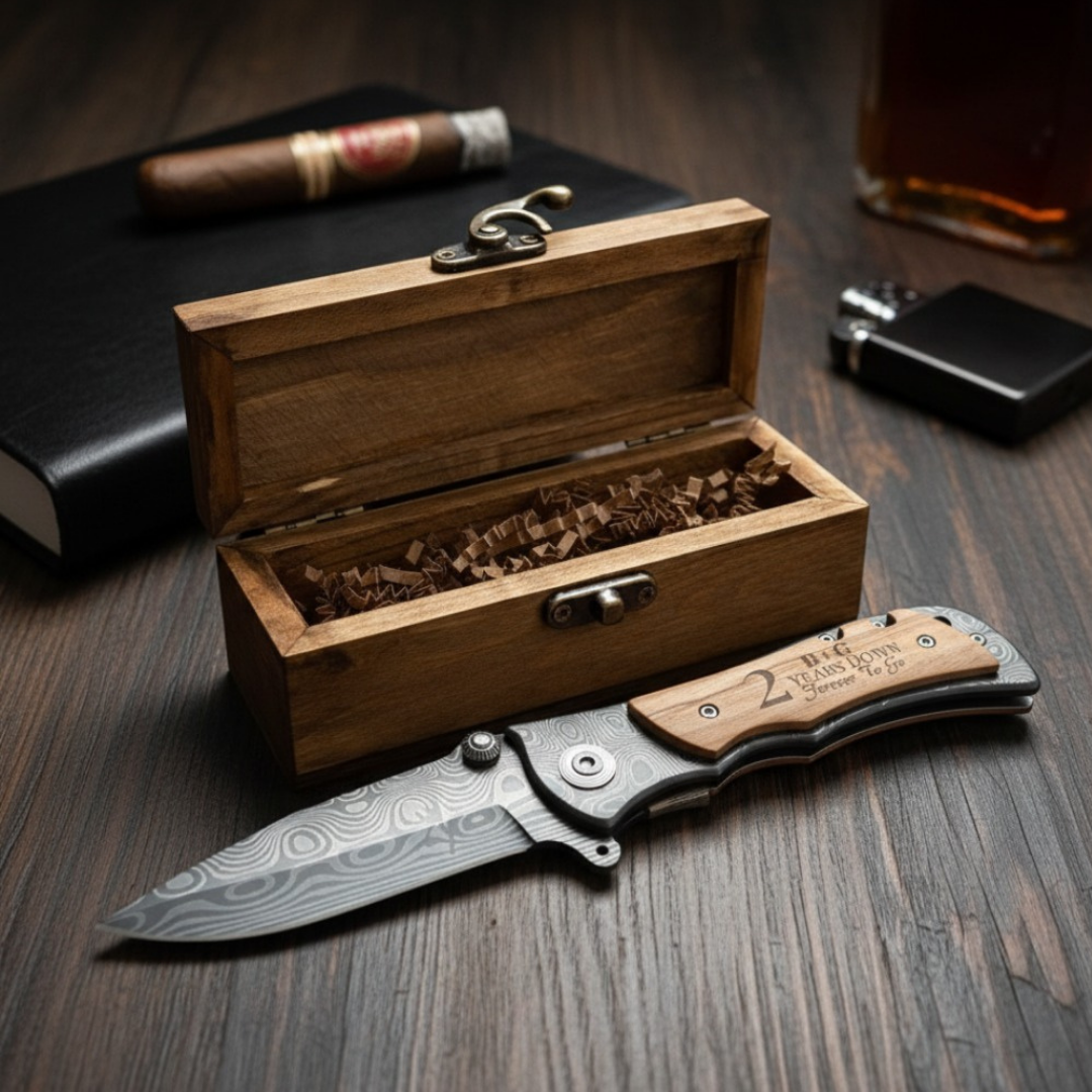 Whether it’s your 2nd, 5th, or 20th anniversary together, this knife marks the moment in a way that’s both rugged and romantic. When he opens the box and sees this custom piece, his face will light up — and you’ll know you nailed it.
