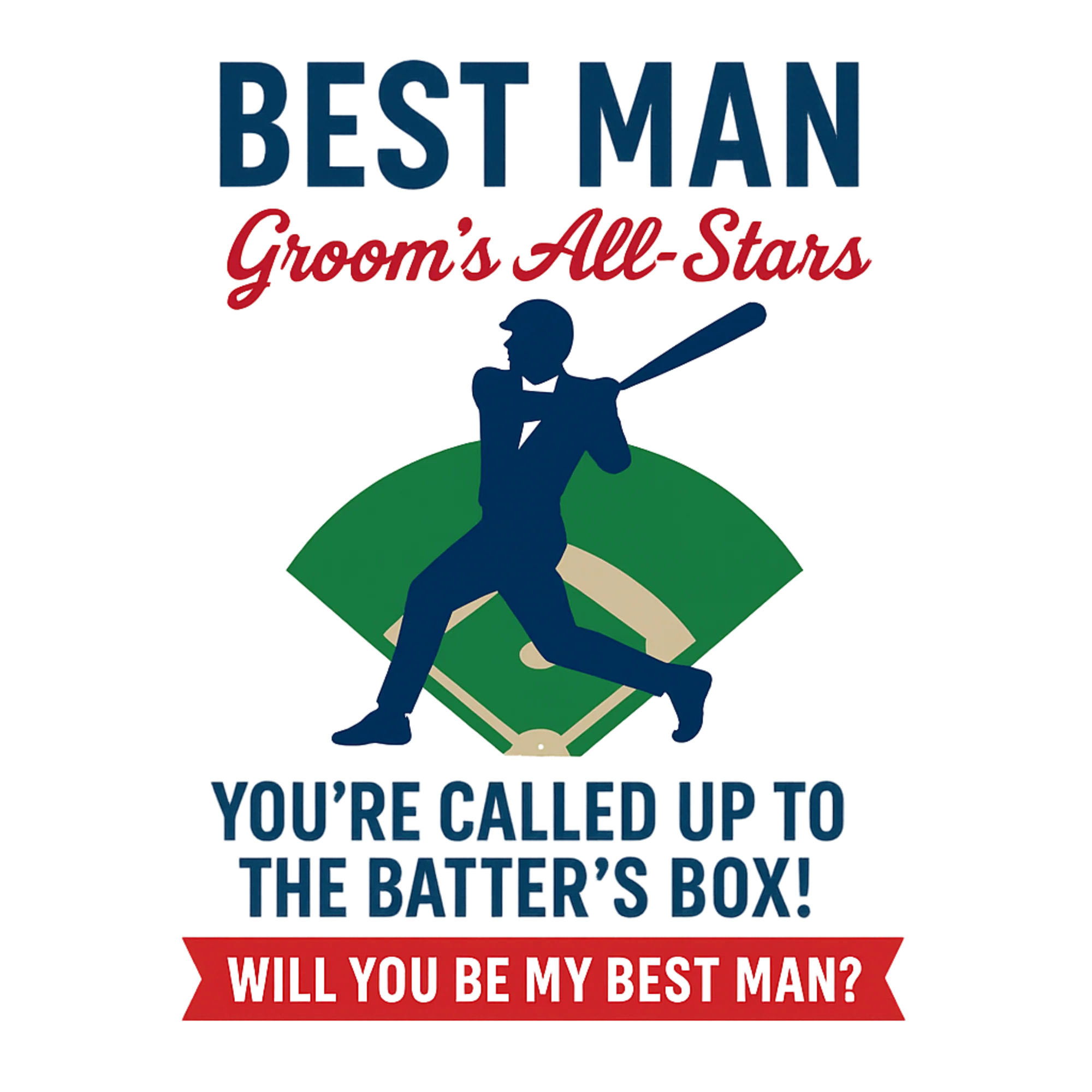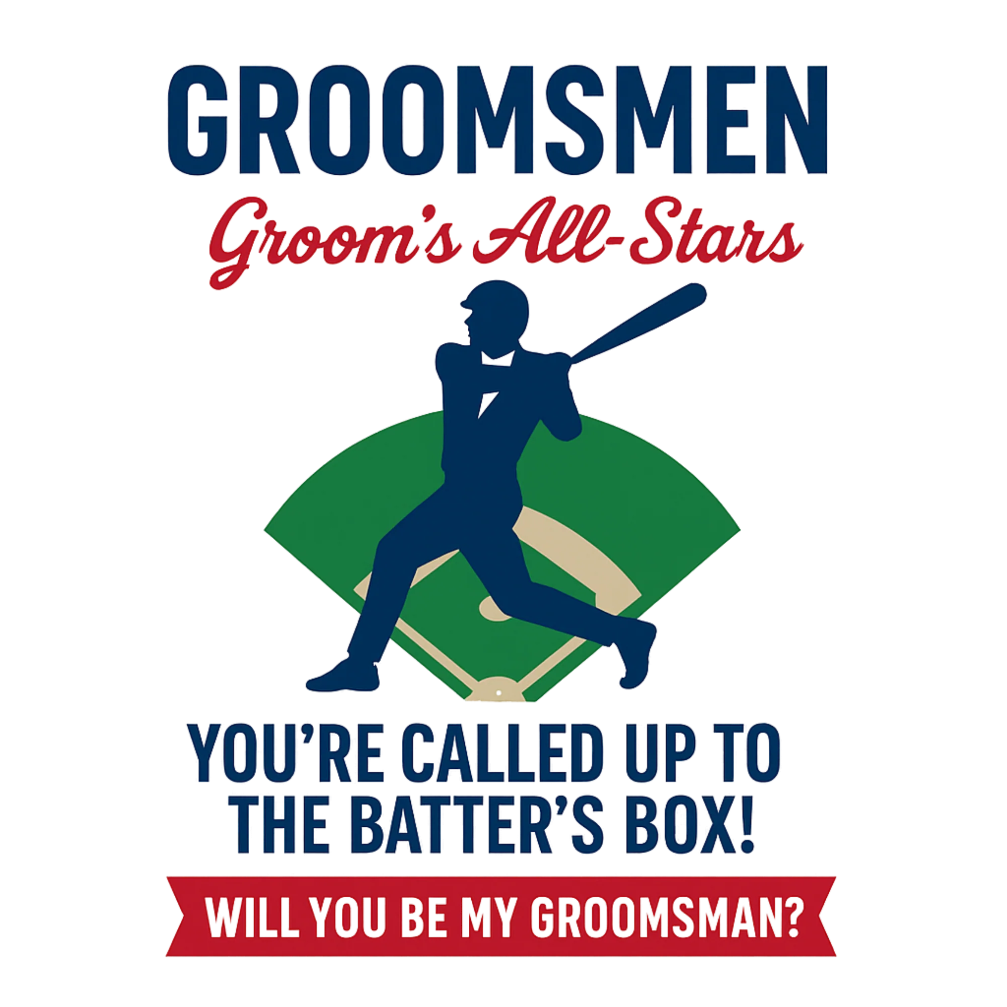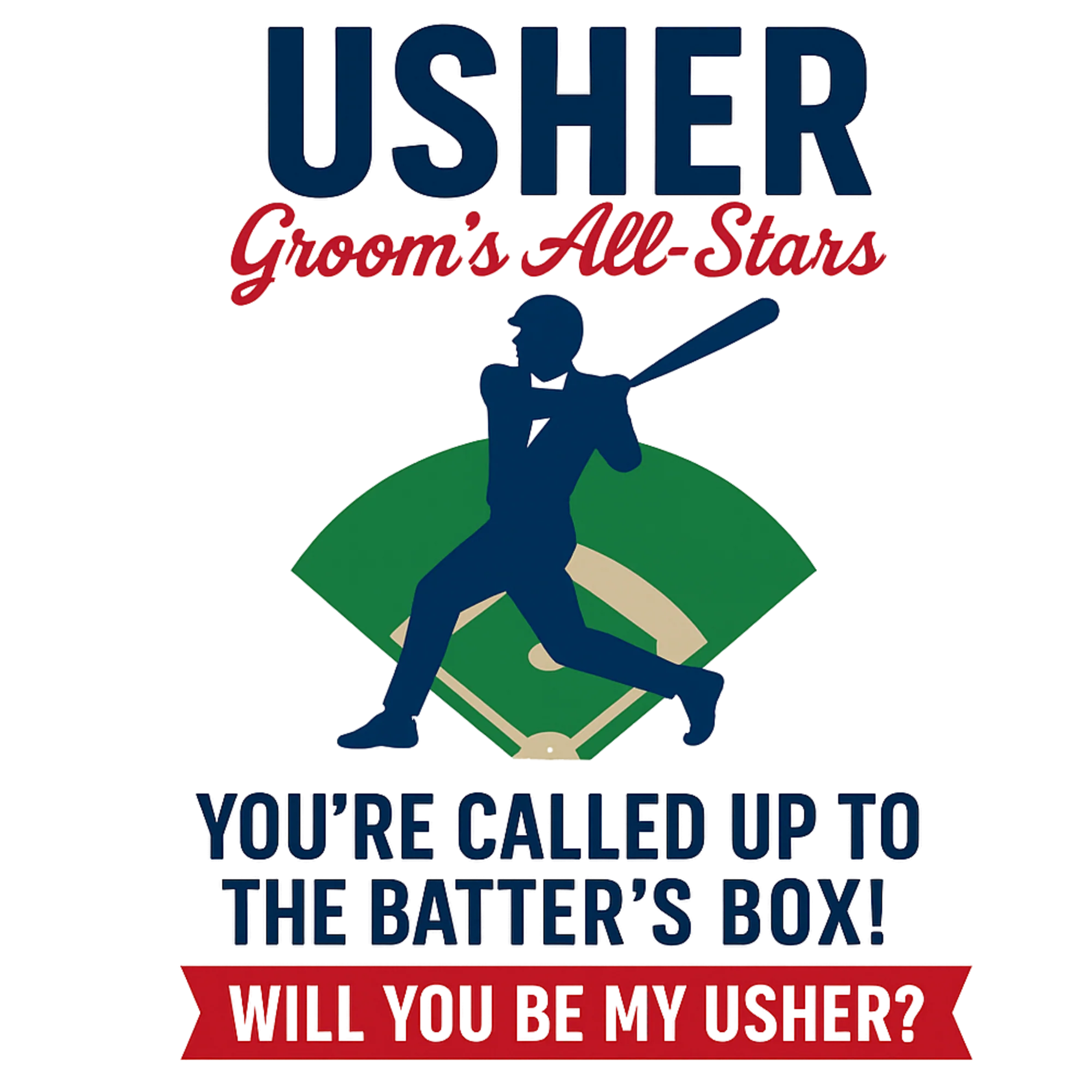 Make your wedding dream team official with these Batter Up Groomsmen Proposal Cards — a playful and unforgettable way to invite your closest guys to join your “Groom’s All-Stars.” Whether you're calling on your Best Man, Groomsmen, or Usher, this baseball-inspired card is a fun and thoughtful pitch they’ll be excited to catch.