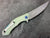 The handle is made with 420 SS Screws and Durable Textured G10 over Stainless Steel Inlays. G10 is known for its high strength, low moisture absorption, excellent electrical insulating properties, and chemical resistance. This ensures that the handle is sturdy, durable, and can withstand tough conditions.