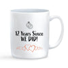 Celebrate your anniversary in style with our personalized Anniversary Mug! Perfectly designed to display your own special history, this white mug and personal message is sure to bring a tear to the eye of your loved one. Made from durable ceramic, this stylish mug is sure to bring joy and cheer long after you've finished your celebration!