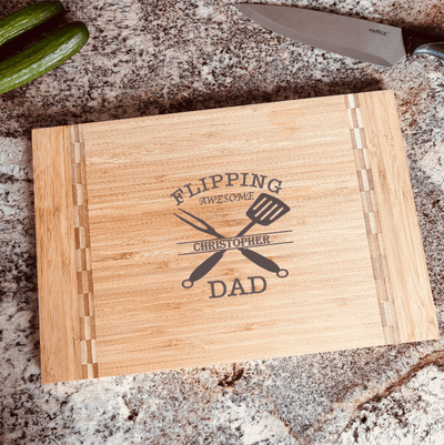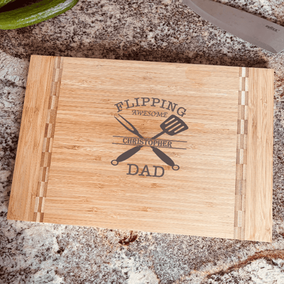 Is your Dad the best? Then get him this personalized cutting board as the perfect Father's Day gift! This rectangle bamboo cutting board comes with butcher block ends, adding a manly charm to any kitchen. Plus, it's engraved with a reminder of his awesomeness!