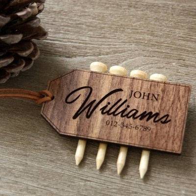 The Bunker Bag Tag is the perfect way to personalize your golf game. This sleek and stylish wooden golf bag tag features a built-in golf tee holder, so you can easily grab your clubs and get to the course. With your personalized engraved name, this golf accessory is sure to make you stand out on the fairway. The Bunker Bag Tag makes a great gift for any golfer in your life.