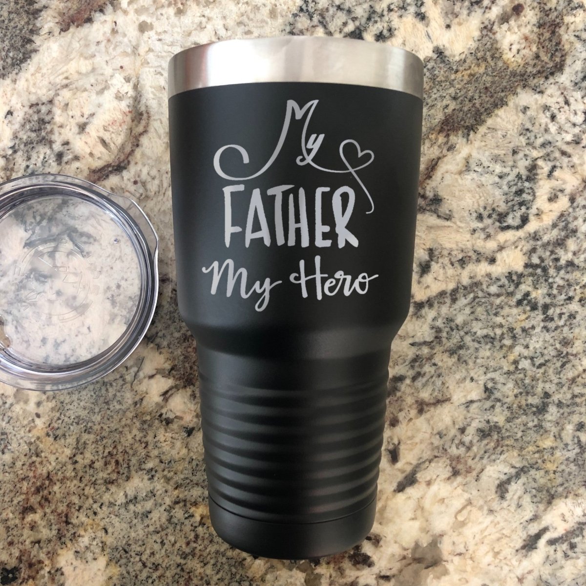 Wherever Dad's day takes him he will love having this special tumbler by his side. More than keeping his favorite beverage at just the right temp he will be reminded of just how much he means to you. Is that a man tear I see...?