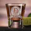 Gift this shot glass with his favorite whiskey or have it as an accessory to his collection. This shot glass comes sand-carved with your guy's initials and name in a gorgeous medieval design. Our master carvers will sand carve the background design into the glass, leaving your lettering and design raised from the glass surface in a stunning 3D manner that is unmatched by simple engraving, etching, or screenprinting techniques.
