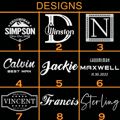 Make these shades extra special by adding your man's information to the text box at the top of the page. Choose from our many different design options and follow the example below to ensure accuracy.