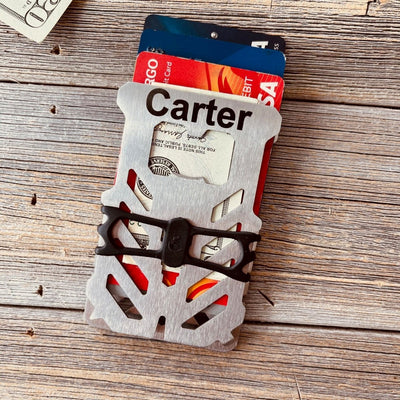 This slim wallet is the ultimate marriage of form and function. From opening packages to opening bottles he will have all the tools he needs right in his pocket with this personalized RFID wallet. Give your guy the gift of always being prepared while stepping up his style game.
