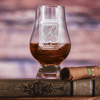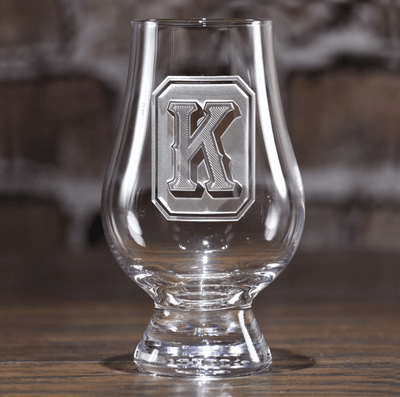 This custom Glencairn is the perfect accessory to his collection. It comes sand-carved with your guy's initials in a gorgeous emerald design. Our master carvers will sand carve the background design into the glass, leaving your lettering raised from the glass surface in a stunning 3D manner that is unmatched by simple engraving, etching, or screenprinting techniques.