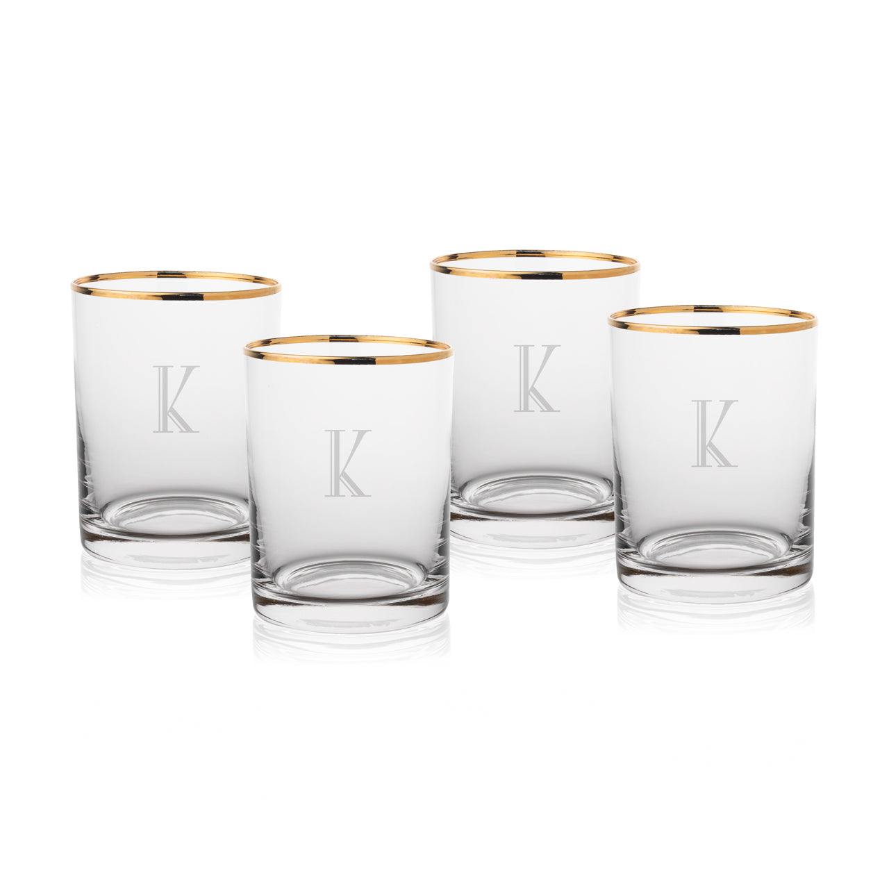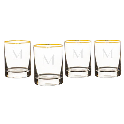 Timeless sophistication meets personal flair in The Gold Standard—a stunning set of four monogrammed whiskey glasses that brings elevated style to every pour. Each glass is accented with a delicate gold-plated rim and etched with a crisp, custom monogram, turning every sip into a toast to taste.