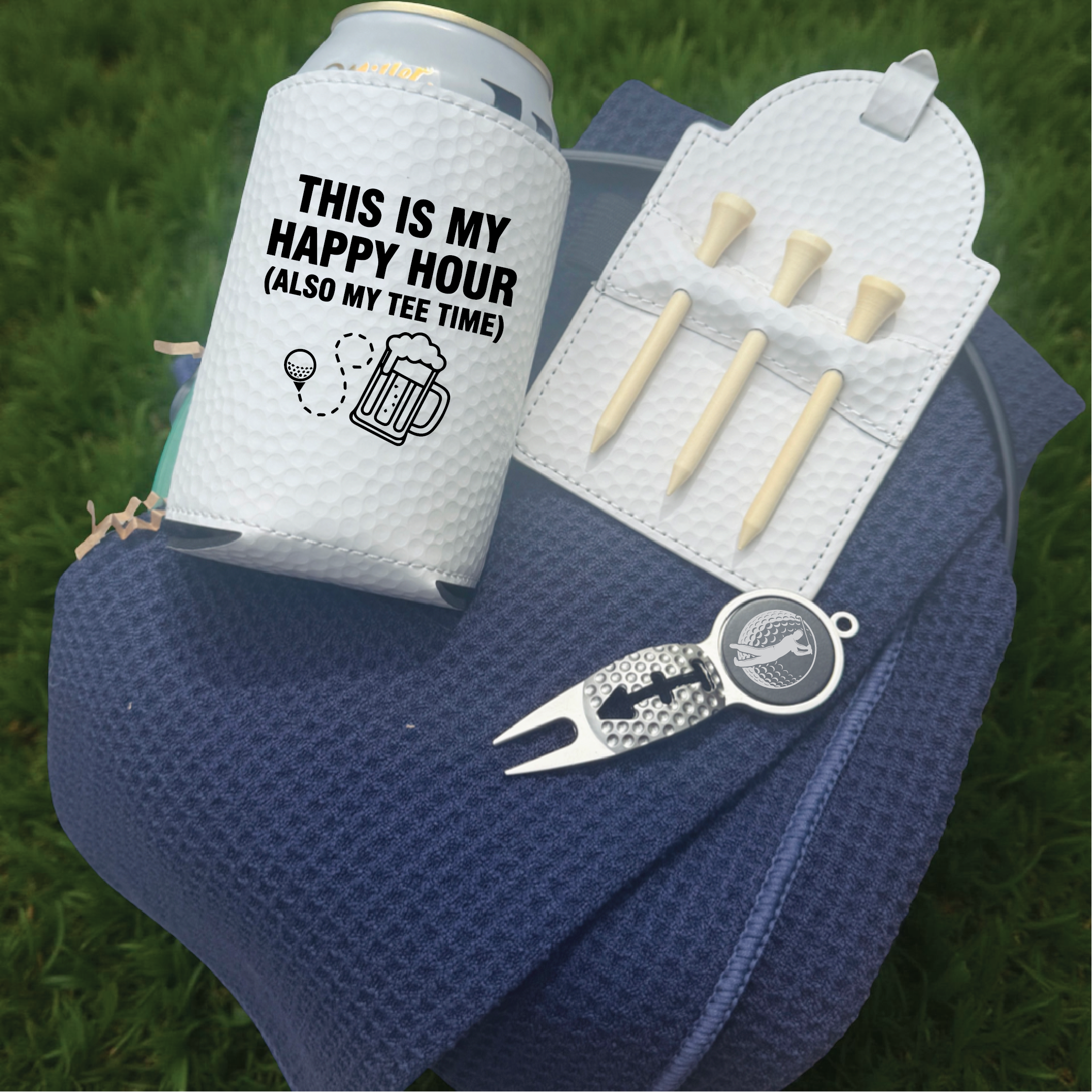 Looking for the ultimate golf gift that’s equal parts funny, functional, and totally unforgettable? This “Happy Hour” Golf Gift Basket hits the sweet spot. Packed in a real golf ball bucket and filled with must-have course essentials—including a magnetic koozie that proudly declares “This Is My Happy Hour (Also My Tee Time)”—this gift brings the laughs and the love straight to the fairway.