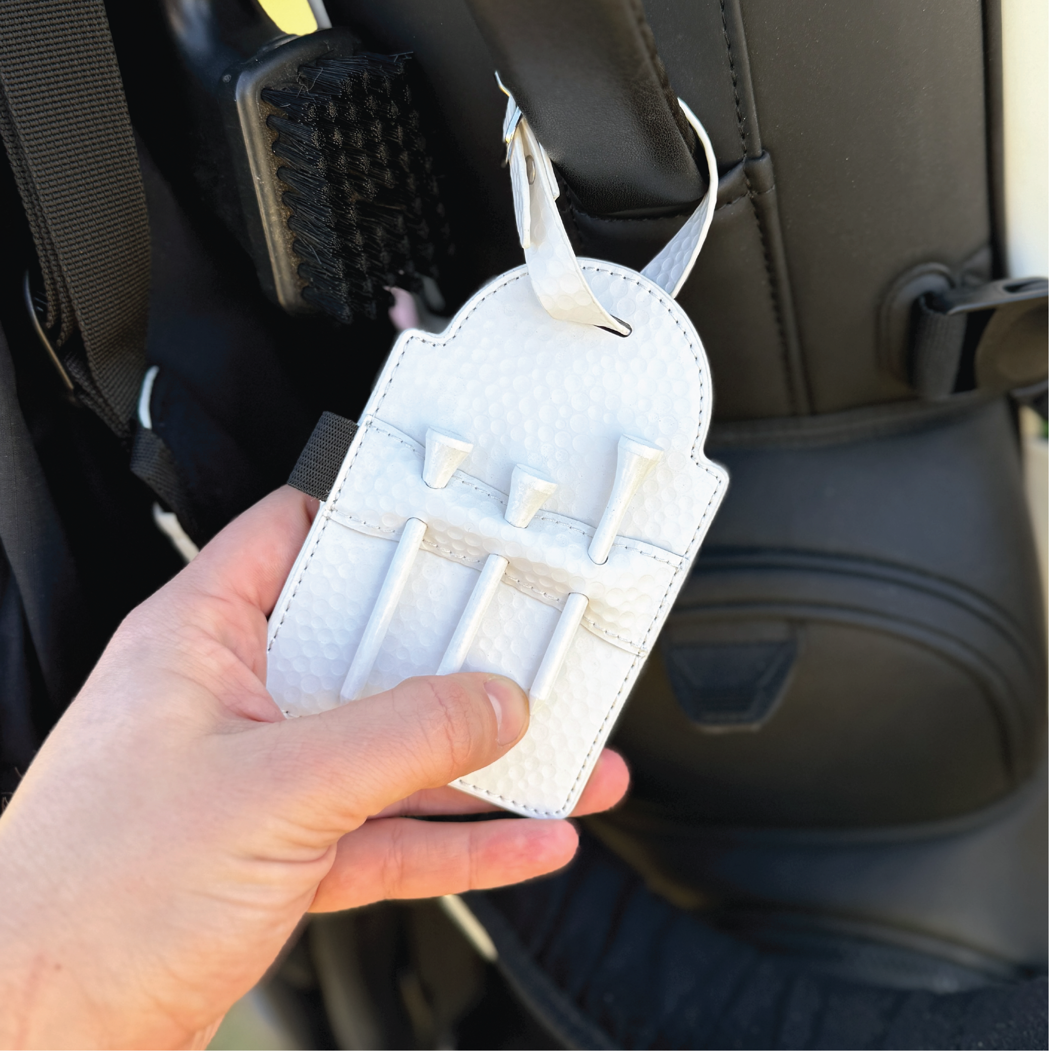 Tee Holder: White faux leather with dimpled texture, holds 3 standard tees (included)