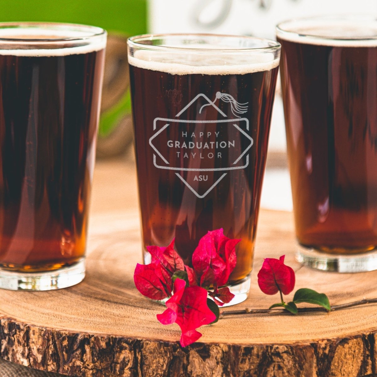 Whether your graduate is headed to college, the real world, or anywhere in between, they'll need a trusty pint glass to help them toast their accomplishments. This Graduation Pint Glass is perfect for any beer lover and makes a great gift for any proud grad. Made of sturdy glass, can be engraved with the graduate's name and school! So raise a glass and celebrate your graduate's big achievement with this stylish pint glass.