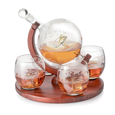 An absolute must-have for the connoisseur, this decanter set elevates any bar with its impressive display and world map glasses. It's not only a statement piece but also a conversation starter that adds an adventurous touch to your space.