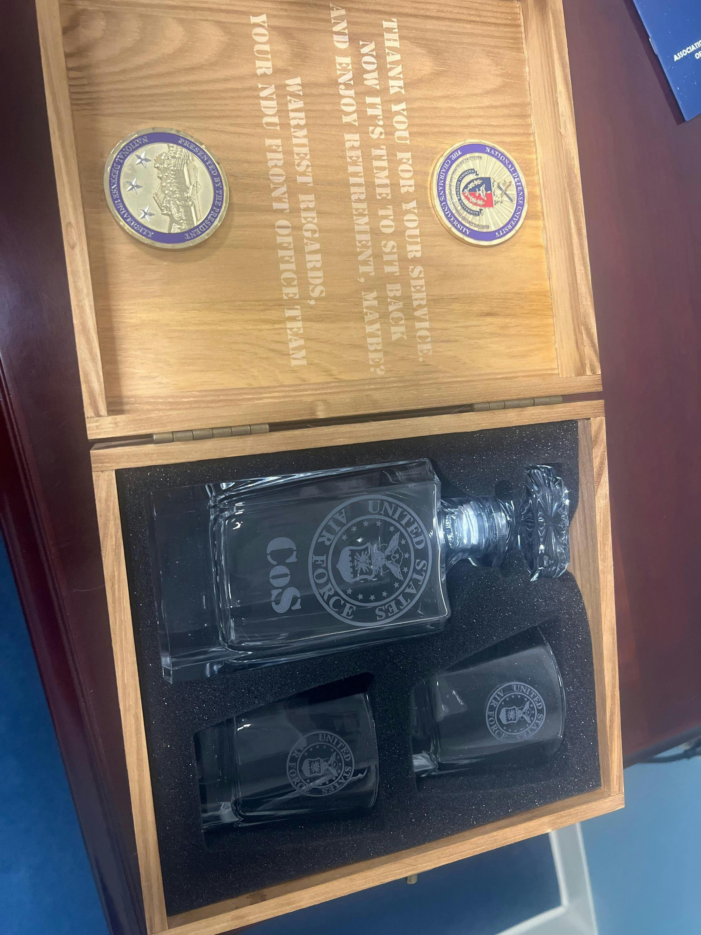 Built for Big Moments: Free engraving on both decanter and box makes it a personal keepsake for retirements, birthdays, or military ceremonies.