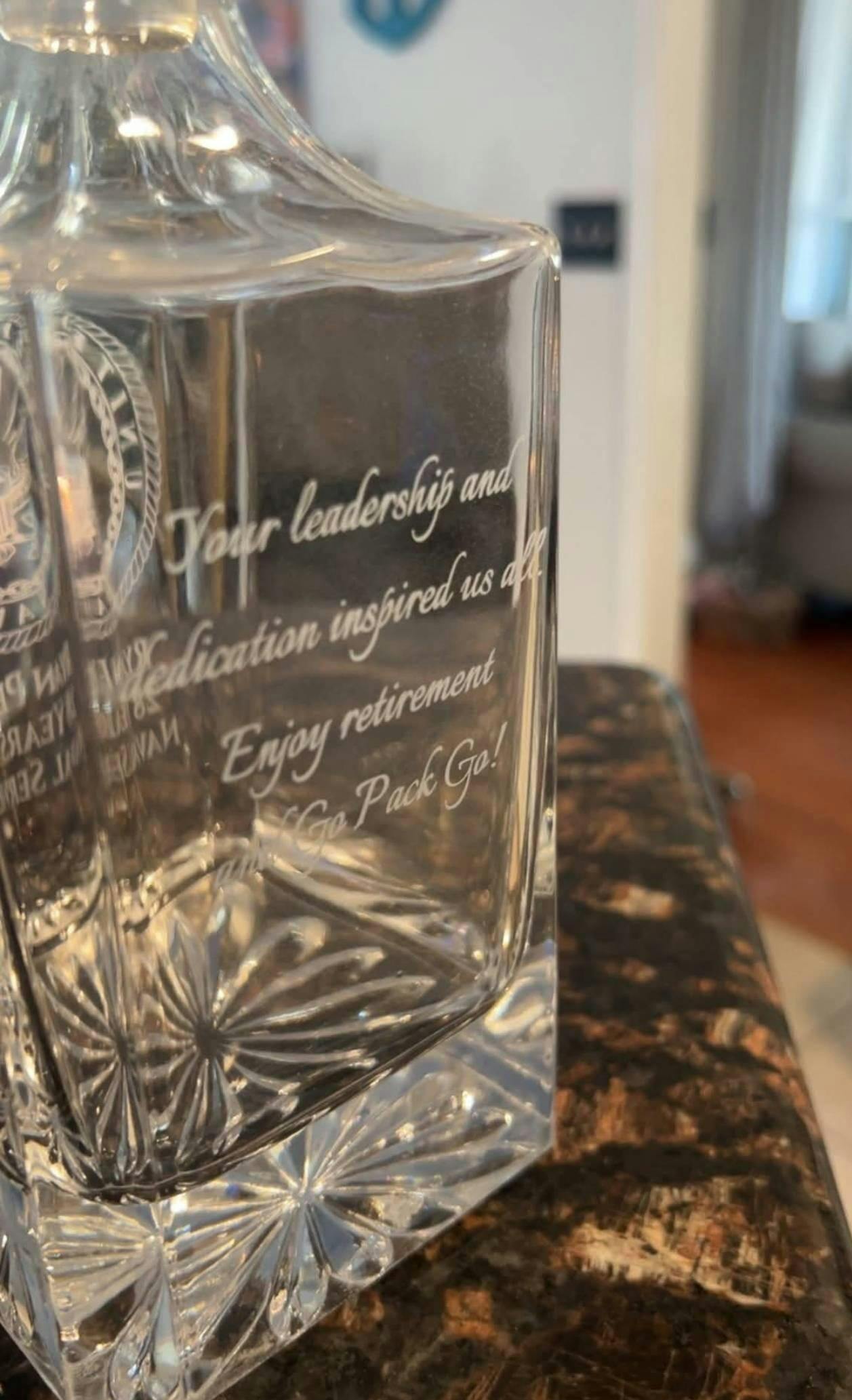 Choose with or without the gift box. If selecting without the box, your custom message will be engraved on the back of the decanter.