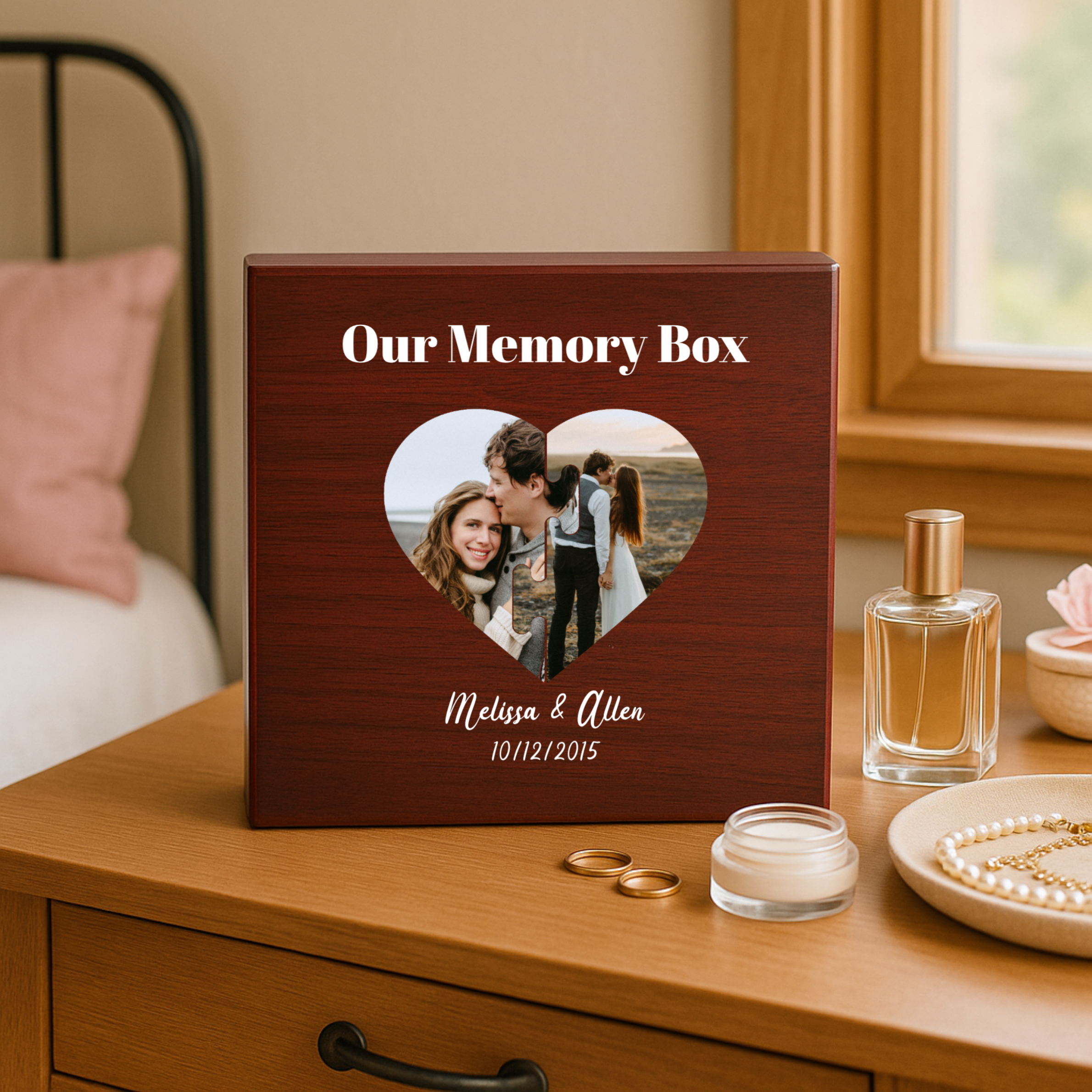 Some gifts do more than surprise — they tell your story. The Our Memories Keepsake Box is a heartfelt way to show him just how much your journey together means. With a personalized heart-shaped photo collage and your custom names and date engraved beneath, it’s not just a box — it’s a reminder of the memories you’ve made and the life you're building together.