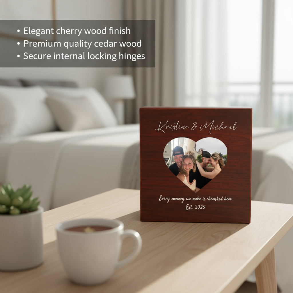 Crafted with a warm cherry wood finish and lined with aromatic Spanish cedar, this box is where sentiment meets substance. It’s perfect for keeping the things that matter most — handwritten notes, ticket stubs, meaningful photos, or even his favorite watch. Every time he opens it, he’ll think of you — and the love you’ve shared.