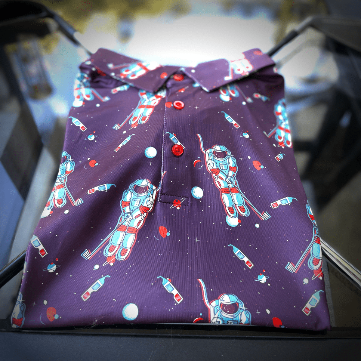 Where were we? Oh ya, the polo... Outer Bounds is for that guy above. It's a fun and playful space-themed golf polo with a nice homage to retro 90s swag.