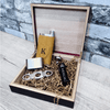 Elegant Wooden Gift Box: All items are presented in a black-finished wooden box lined with Spanish cedar, which doubles as a humidor with a capacity of up to 20 cigars. The box includes a humidifier to maintain the perfect environment for cigar storage.