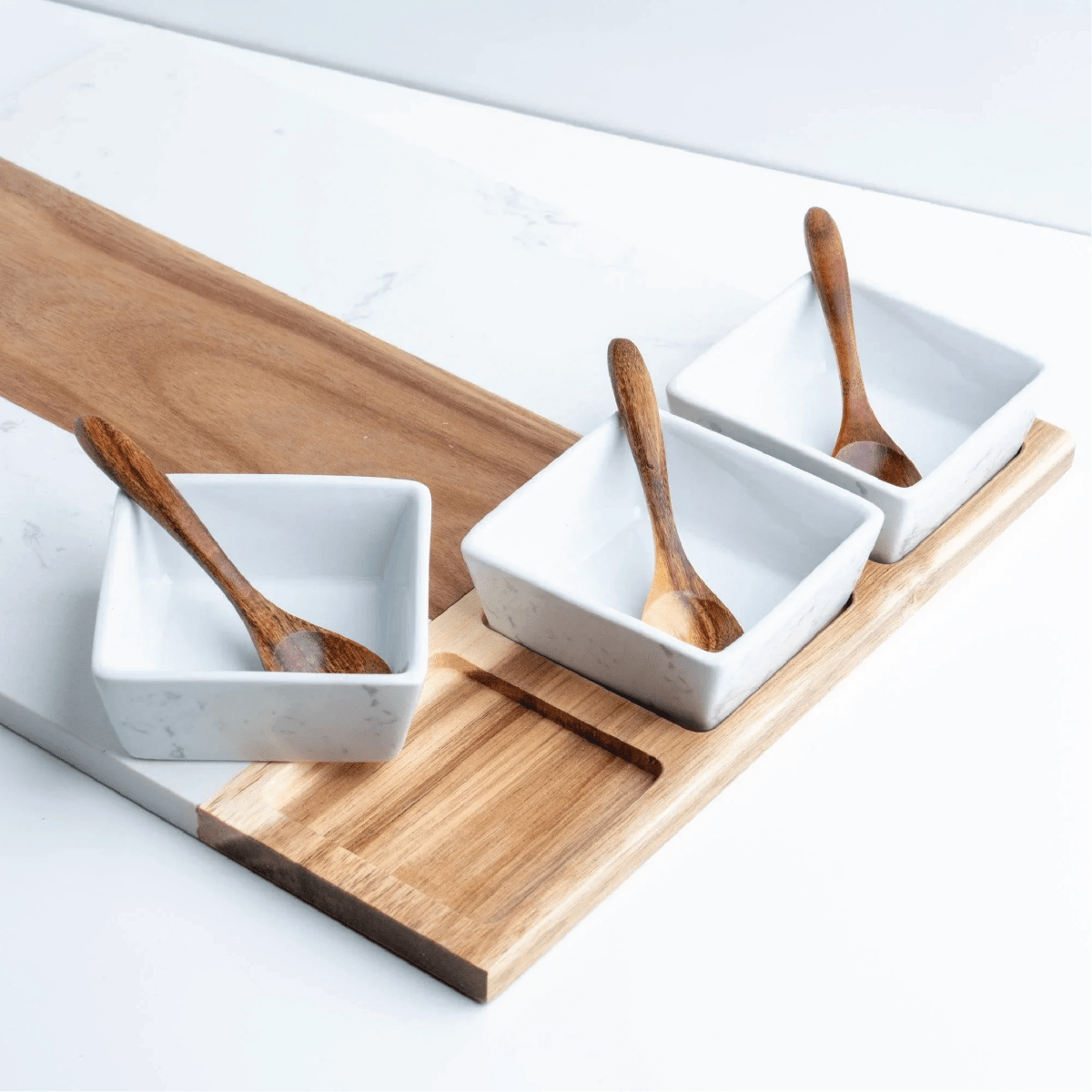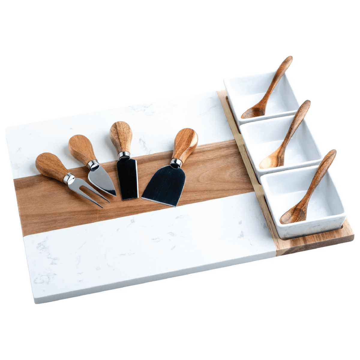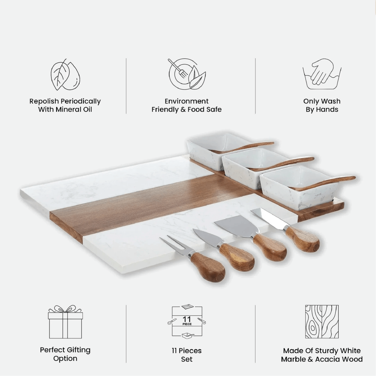 Premium quality: Crafted from high-quality acacia wood and luxurious marble, this charcuterie board is built to last and adds a touch of sophistication to any entertaining occasion.
