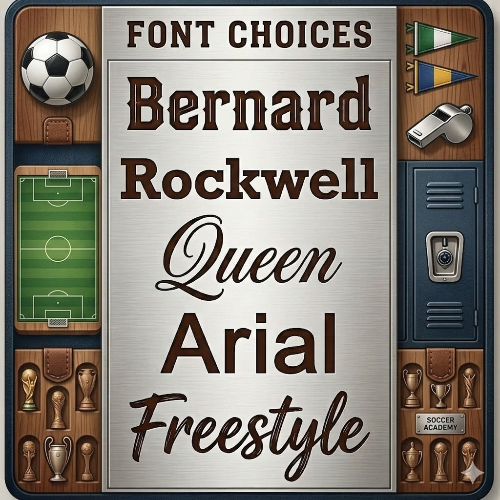 Pick Your Font: Choose from our 5 most popular styles—go bold for an athletic look or script for something elegant.