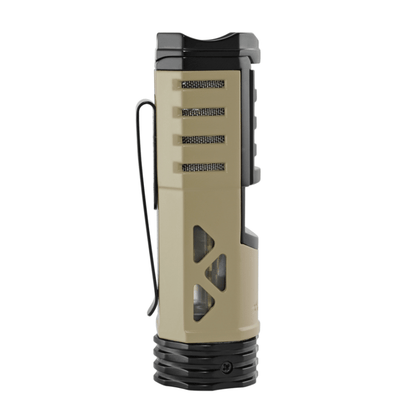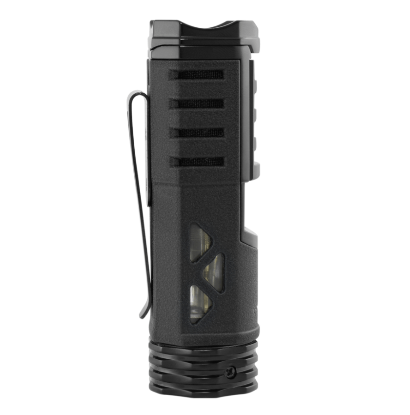 This wand-shaped lighter is perfect for any on-the-go occasion. Its pocket clip ensures secure portability and its contoured body allows for a secure grip. Its all-in-one functions also include its crenelated cap that functions as a cigar rest, which is something that a cigar connoisseur should always have.