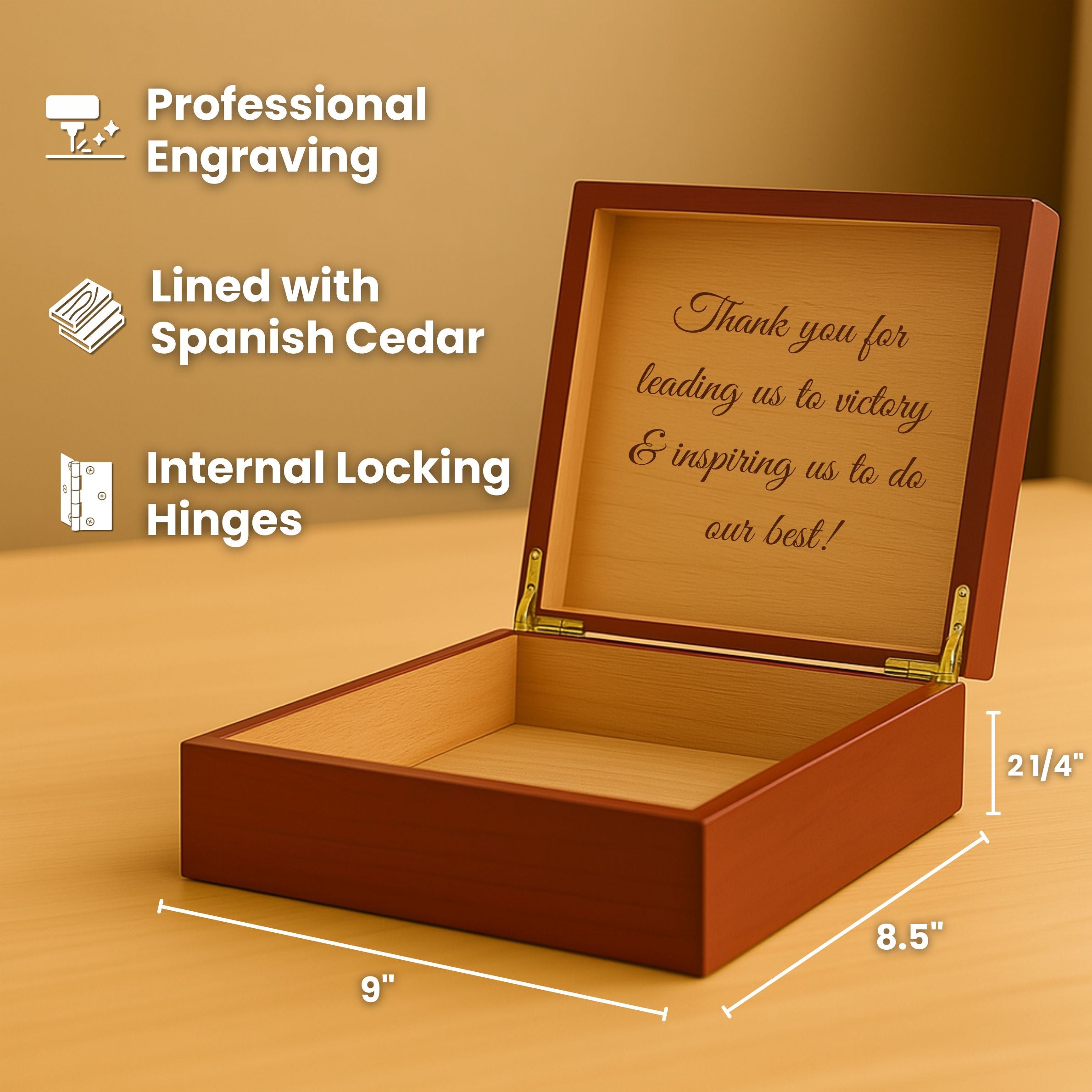 Custom Engraved Message – Share a heartfelt message your coach will see every time he opens the lid.