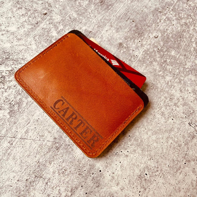 If you are looking to put a little style into your mans pocket look no further than this slim personalized front pocket wallet. Made for the men who are sick of sitting on a brick or their bulging hamburger wallet destroying their pants. This personalized wallet will last and will actually get better with time, that’s what great leather does.