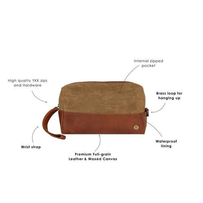 Our Classic Canvas Wash Bag in Grey Waxed Canvas and Black Leather is an essential travel companion for those looking for a stylish travel case to store their toiletries and cosmetics. Lined with waterproof nylon, the wash bags offer better protection for your toiletry essentials with their easy-to-clean surface and water resistance.