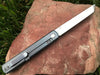 The Stake is the perfect EDC knife. It's simple and elegant design is inspired by traditional Japanese knives, but it's made with modern materials and construction. The blade is made from high quality D2 steel, and is double beveled for a razor sharp edge. The thumb lever allows for single handed opening, and the ball bearing pivot system ensures a smooth and fast opening action. The Stake is the perfect size for everyday carry, and will make sure you're always prepared.
