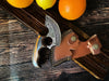This Custom Ulu design knife is handmade by Titan. This blade is design so to withstand areas where temperatures can reach -60 degrees in winter. To withstand this harsh environment they are made from top-grade materials and with attention to detail. Each knife comes with a leather sheath. The ulu knife is a perfect addition to any kitchen. Perfect for cutting a pizza or mincing garlic. The unique design of the ulu knife creates efficient ergonomics by placing the force of your hand directly over the blade. This results in less wrist and grip fatigue.