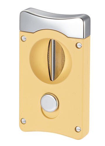 Made with stainless-steel blades and finished in multiple colors, this best cigar cutter oozes sophistication and style. Plus, it is easy to use, just slide down the release mechanism to pop out the razor-sharp blade, then insert your cigar and give the wedge-shaped cutter a gentle squeeze.