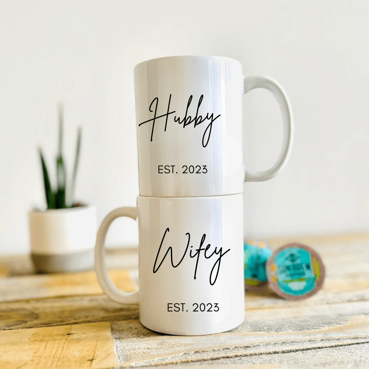 With a comfortable handle and the perfect size for your favorite hot beverage, these mugs are not just a wonderful addition to your morning routine but also a lovely gift for your significant other or your favorite couple. Celebrate your love every day with our Hubby Wifey Mug Set!